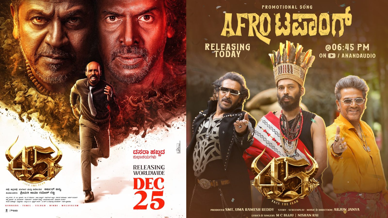 ಡಿಸೆಂಬರ್ ನಲ್ಲಿ ಸಾಲು ಸಾಲು ಕನ್ನಡ ಸಿನಿಮಾಗಳು ರಿಲೀಸ್ ಗೆ ರೆಡಿಯಾಗಿವೆ. ಅದ್ರಲ್ಲೂ ಸೂಪರ್ ಸ್ಟಾರ್ಸ್ ಸಿನಿಮಾಗಳೇ ಲೈನ್ ನಲ್ಲಿವೆ. ಈ ನಡುವೆ 45 ಸಿನಿಮಾ ಹಲವು ಕಾರಣಕ್ಕೆ ಸದ್ದು ಮಾಡಿ ಸುದ್ದಿ ಆಗ್ತಿದೆ. ಎಸ್, ಈಗಾಗಲೇ 45 ಚಿತ್ರದ ಆಫ್ರೋ ಸಾಂಗ್ ಸಕತ್ ಹಿಟ್ ಆಗಿದೆ. ಶಿವಣ್ಣ.. ಉಪೇಂದ್ರ.. ರಾಜ್ ಬಿ ಕುಣಿತಕ್ಕೆ ಫ್ಯಾನ್ಸ್ ಕೂಡ ಸ್ಟೆಪ್ ಹಾಕಿ ಸಿನಿಮಾ ಬರುವಿಕೆಗಾಗಿ ಕಾಯ್ತಿದ್ದಾರೆ. ಸಿನಿಮಾ ಬಿಡುಗಡೆಗೂ ಮೊದಲು ನಿರ್ದೇಶಕ ಅರ್ಜುನ್ ಜನ್ಯ ಟ್ರೈಲರ್ ರಿಲೀಸ್ ಮಾಡೋಕೆ ಡೇಟ್ ಫಿಕ್ಸ್ ಮಾಡಿದ್ದಾರೆ.