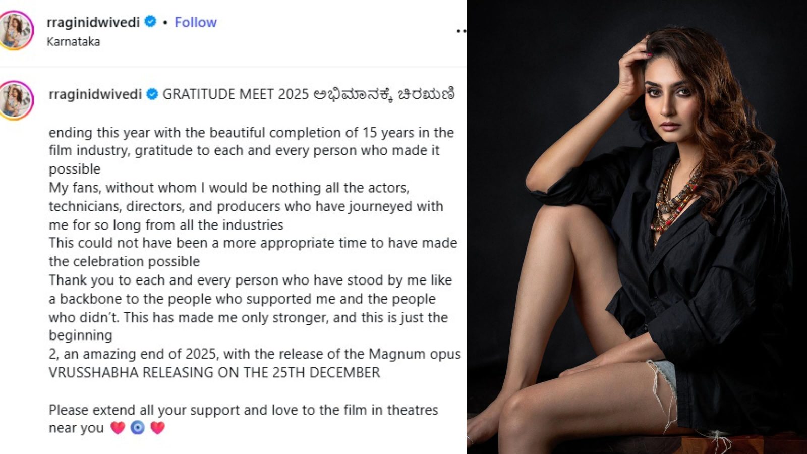 ಇಂಡಸ್ಟ್ರಿಯಲ್ಲಿ 15ವರ್ಷ ಪೂರೈಸಿದ ರಾಗಿಣಿ ದ್ವಿವೇದಿ