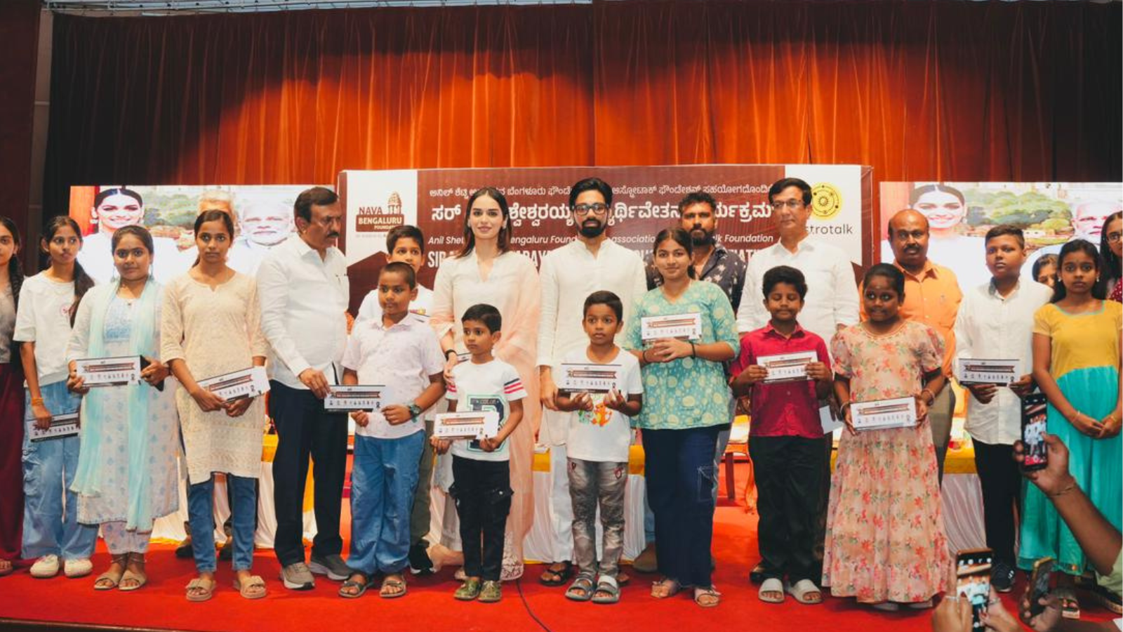 ನವ ಬೆಂಗಳೂರು ಫೌಂಡೇಷನ್ ಹಾಗೂ ಅಸ್ಟ್ಫೋಟಾಕ್ ಫೌಂಡೇಷನ್ ವತಿಯಿಂದ 200ಕ್ಕೂ ಹೆಚ್ಚು ವಿದ್ಯಾರ್ಥಿಗಳಿಗೆ ವೇತನ ನೀಡಲಾಯಿತು. ಈ ಕಾರ್ಯಕ್ರಮದಲ್ಲಿ ವಿಶ್ವ ಸುಂದರಿ ಮತ್ತು ಬಾಲಿವುಡ್ ನಟಿ ಮಾನುಷಿ ಚಿಲ್ಲರ್ ಹಾಗೂ ಅನಿಲ್ ಶೆಟ್ಟಿ ವಿದ್ಯಾರ್ಥಿಗಳಿಗೆ ವೇತನ ವಿತರಣೆ ಮಾಡಿದರು.