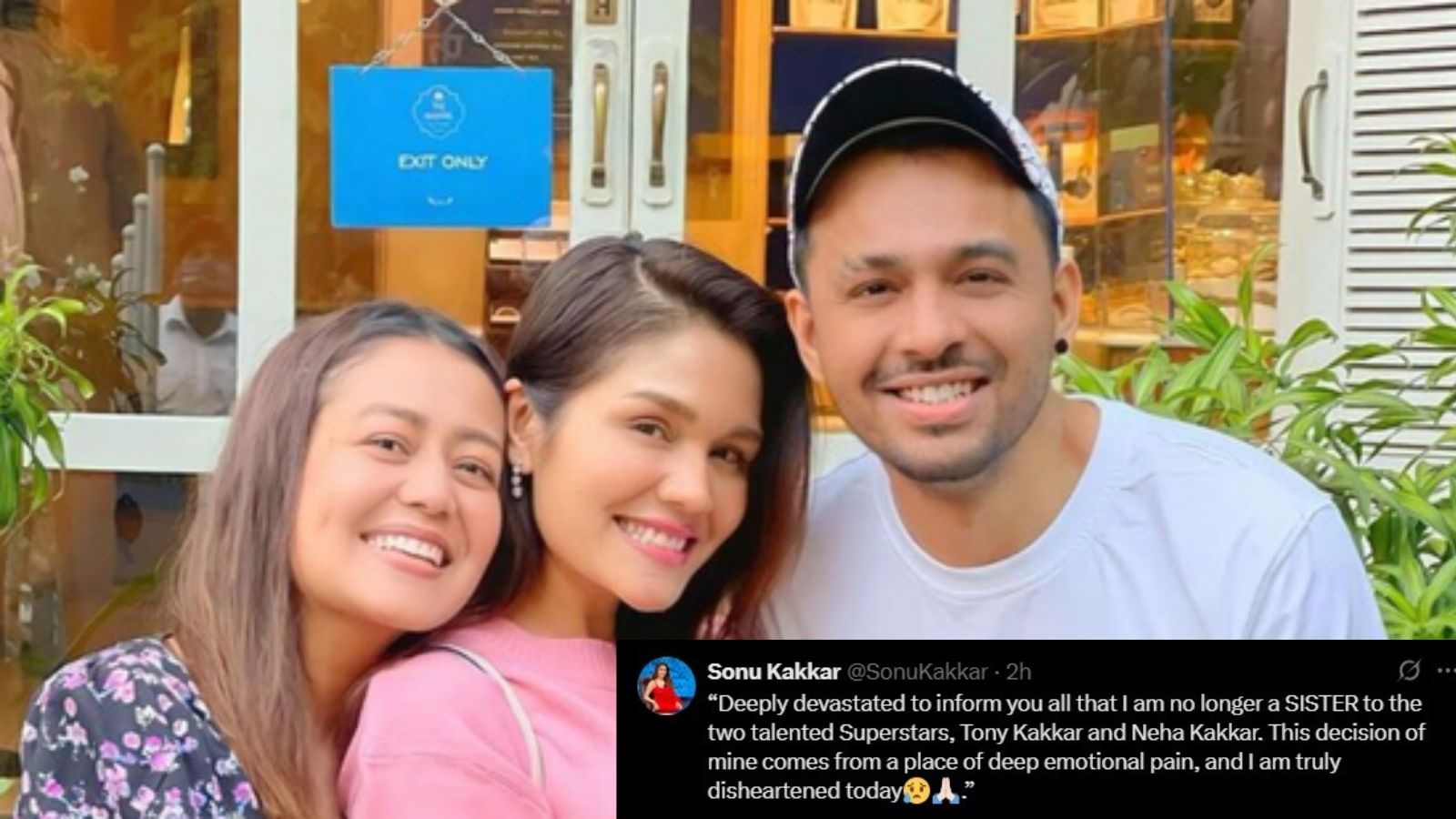 ಇಬ್ಬರು ಪ್ರತಿಭಾನ್ವಿತ ಸೂಪರ್ಸ್ಟಾರ್ಗಳಾದ ಟೋನಿ ಮತ್ತು ನೇಹಾ ಕಕ್ಕರ್ ಅವರಿಗೆ ನಾನು ಇನ್ನು ಮುಂದೆ ಸಹೋದರಿಯಲ್ಲ ಎಂಬುದನ್ನು ಎಲ್ಲರಿಗೂ ತಿಳಿಸಲು ತುಂಬಾ ದುಃಖವಾಗಿದೆ. ಈ ನಿರ್ಧಾರ ನನ್ನ ಆಂತರಿಕ ನೋವಿನಿಂದ ಬಂದಿದೆ. ಇಂದು ನಾನು ನಿಜವಾಗಿಯೂ ನಿರಾಶೆಗೊಂಡಿದ್ದೇನೆ.” ಎಂದು ಬರೆದುಕೊಂಡಿದ್ದಾರೆ.