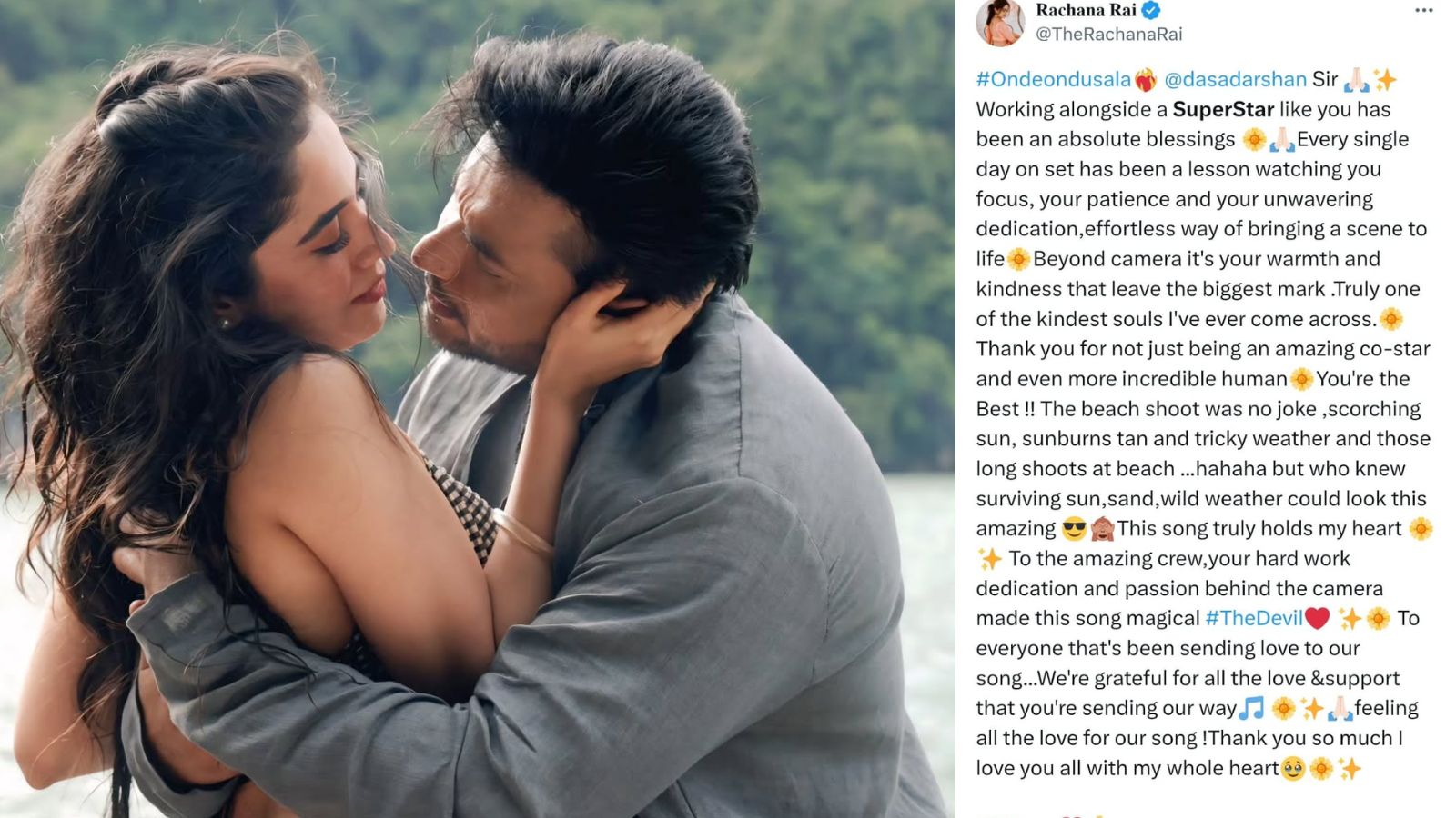 ರಚನಾ ರೈ ದರ್ಶನ್ ಅವರನ್ನು ನಿಜವಾಗಿಯೂ ನಾನು ಕಂಡ ಅತ್ಯಂತ ದಯೆಯ ವ್ಯಕ್ತಿಗಳಲ್ಲಿ ಒಬ್ಬರು” ಎಂದು ಹೇಳಿದ್ದಾರೆ. ಸೆಟ್ನಲ್ಲಿ ದರ್ಶನ್ ಅವರ ಗಮನ, ತಾಳ್ಮೆ ಮತ್ತು ಅಚಲ ಸಮರ್ಪಣೆ ಎಲ್ಲರಿಗೂ ಪಾಠವಾಗುವಂತಹದ್ದು ಎಂದು ತಮ್ಮ ಅಭಿಪ್ರಾಯ ಹಂಚಿಕೊಂಡಿದ್ದಾರೆ.