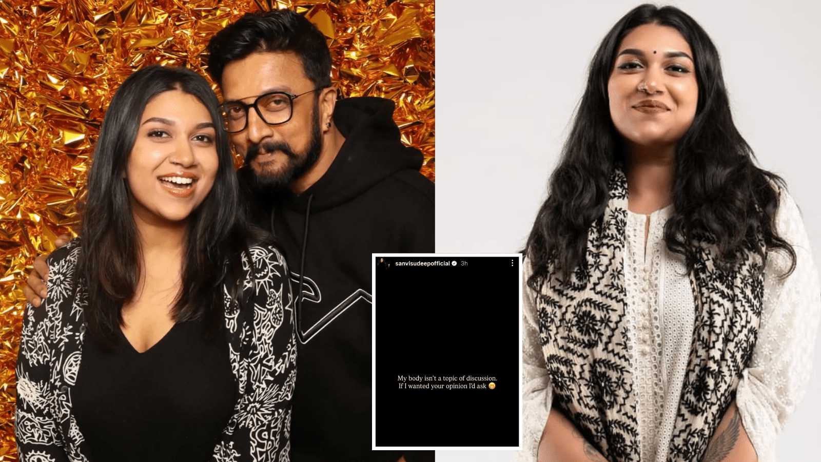 ಇನ್ಸ್ಟಾಗ್ರಾಂನಲ್ಲಿ ಸ್ಟೋರಿ ಹಾಕಿರುವ ಸಾನ್ವಿ ಸುದೀಪ್, “ನನ್ನ ದೇಹವು ಚರ್ಚೆಯ ವಿಷಯವಲ್ಲ. ನಿಮ್ಮ ಅಭಿಪ್ರಾಯ ಬೇಕಾದರೆ ನಾನು ಕೇಳುತ್ತೇನೆ” ಎಂದು ಸ್ಪಷ್ಟವಾಗಿ ಬರೆದುಕೊಂಡಿದ್ದಾರೆ. ಈ ಮೂಲಕ, ಅನಗತ್ಯ ಟೀಕೆಗಳು ಹಾಗೂ ವೈಯಕ್ತಿಕ ದೇಹದ ಕುರಿತಾಗಿ ನಡೆಯುವ ವಿಷಯಕ್ಕೆ ತೀವ್ರ ಅಸಮಾಧಾನ ವ್ಯಕ್ತಪಡಿಸಿದ್ದಾರೆ.