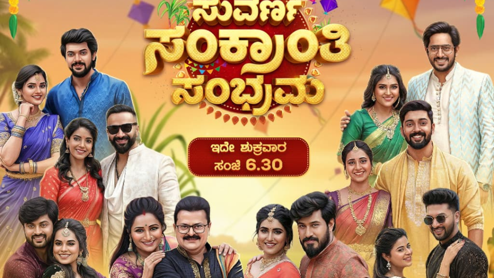 “ಸುವರ್ಣ ಸಂಕ್ರಾಂತಿ ಸಂಭ್ರಮ”ವನ್ನು ಆಚರಿಸಲು ಒಟ್ಟಾಗಿ ಬರ್ತಿದ್ದಾರೆ ಸುವರ್ಣ ತಾರೆಯರು. ಇದೇ ಶುಕ್ರವಾರ (ಜ.16) ಸಂಜೆ 6.30 ರಿಂದ 9.30 ರವರೆಗೆ. ನಿಮ್ಮ ನೆಚ್ಚಿನ ಸ್ಟಾರ್ ಸುವರ್ಣ ವಾಹಿನಿಯಲ್ಲಿ ಪ್ರಸಾರವಾಗಲಿದೆ ತಪ್ಪದೇ ವೀಕ್ಷಿಸಿ.