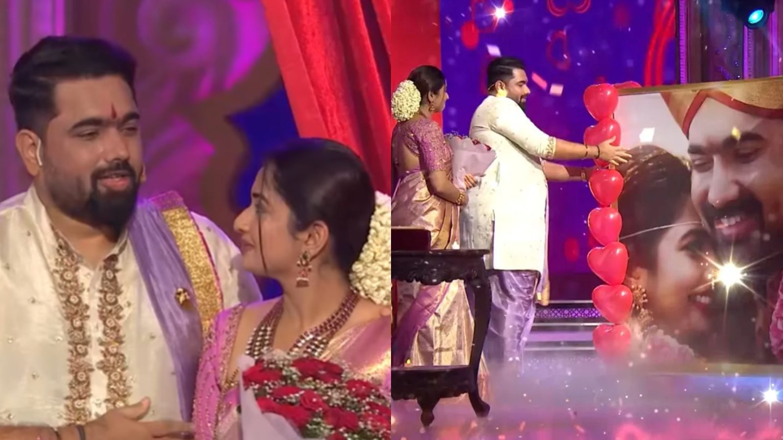 ಮಹಾನಟಿ ವೇದಿಕೆಯಲ್ಲಿ ತರುಣ್ ಸುಧೀರ್ ತಮ್ಮ ಪತ್ನಿ ಸೋನಲ್ಗೆ 9 ವಿಶೇಷ ಗಿಫ್ಟ್ಗಳನ್ನು ಸರ್ಪ್ರೈಸ್ ಆಗಿ ನೀಡಿದರು. “ಗತ 12 ತಿಂಗಳನ್ನು ನೆನಪಿಸಿಕೊಳ್ಳುತ್ತಿದ್ದೇನೆ. ಈ ಹೂವಿನಂತೆ ನಮ್ಮ ಜೀವನ ಅರಳಲಿ. ನೀನು ನನ್ನ ಕುಟುಂಬವನ್ನು ಕಾಪಾಡುವೆ ಎಂಬ ನಂಬಿಕೆ ನನಗಿದೆ. ಈ ಕ್ಷಣವನ್ನು ಖುಷಿಯಿಂದ ಕಾಣುತ್ತೇನೆ,” ಎಂದು ತರುಣ್ ಭಾವುಕವಾಗಿ ಹೇಳಿದರು.