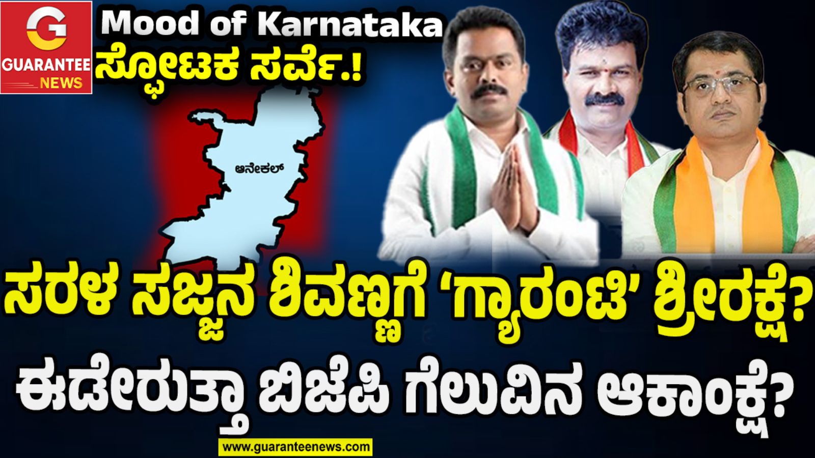 ಗ್ಯಾರಂಟಿ ನ್ಯೂಸ್ ಸ್ಯಾಟಲೈಟ್ ಸುದ್ದಿ ವಾಹಿನಿ ಮೂಡ್ ಆಫ್ ಕರ್ನಾಟಕ ಎಂಬ ಮೆಗಾ ಸರ್ವೆ ನಡೆಸುತ್ತಿದೆ. ಈ ಸಮೀಕ್ಷೆಯಲ್ಲಿ ರಾಜ್ಯದ ಎಲ್ಲಾ 224 ಕ್ಷೇತ್ರಗಳಲ್ಲಿ ಸದ್ಯದ ಸ್ಥಿತಿಗತಿ ಹೇಗಿದೆ ಅನ್ನೋದ್ರ ಕುರಿತಾಗಿ ಜನರ ನಾಡಿಮಿಡಿತ ಗ್ರಹಿಸುವ ಕೆಲಸ ಮಾಡ್ತಿದೆ.
