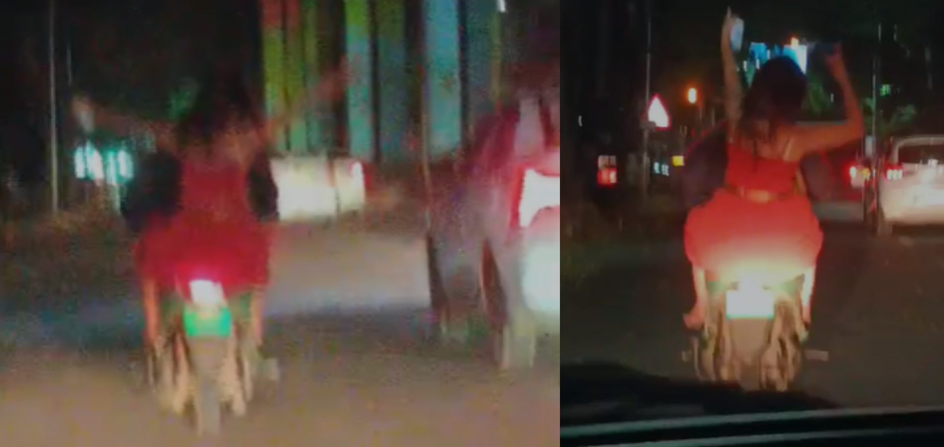 - ಯುವತಿ ಬೈಕ್ ಹಿಂದೆ ಕುಳಿತು ಕೈ ಬೀಸುತ್ತಾ, ಗಾಳಿ ಎದುರಿಸುತ್ತಾ ಹುಚ್ಚಾಟವಾಡುತ್ತಿದ್ದಳು.