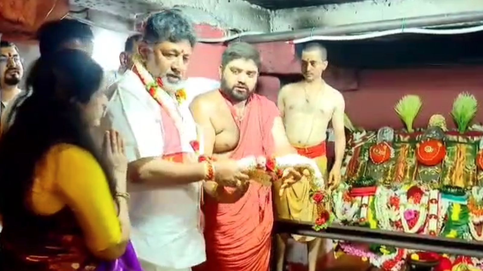 ಕರ್ನಾಟಕದ ಉಪಮುಖ್ಯಮಂತ್ರಿ ಡಿಕೆ ಶಿವಕುಮಾರ್ ಅವರು ತಮ್ಮ ಪತ್ನಿ ಉಷಾ ಅವರೊಂದಿಗೆ ಹಾಸನಾಂಬೆ ದೇವಾಲಯದ ಗರ್ಭಗುಡಿಯಲ್ಲಿ ಸುಮಾರು 15 ನಿಮಿಷಗಳ ಕಾಲ ಆಸೀನರಾಗಿ ವಿಶೇಷ ಪೂಜೆ ಸಲ್ಲಿಸಿದ್ದಾರೆ. ಈ ಸಂದರ್ಭದಲ್ಲಿ ಅವರು ಶಕ್ತಿಯುತವಾದ ನಾರಾಯಣಿ ನಮಸ್ಕಾರ ಮಂತ್ರ ಮತ್ತು ಖಡ್ಗಮಾಲಾ ಸ್ತೋತ್ರವನ್ನು ಪಠಿಸಿದ್ದಾರೆ. ಪೂಜೆಯ ವೇಳೆ ಹಾಸನಾಂಬೆ ದೇವಿಯ ಬಲಭಾಗದಿಂದ ಹೂವು ಬಿದ್ದಿದ್ದು, ಇದನ್ನು ಶುಭ ಸೂಚಕವೆಂದು ಭಕ್ತರು ಗುರುತಿಸಿದ್ದಾರೆ. ಈ ವಿಶೇಷ ಪೂಜೆಯ ಬಗ್ಗೆ ಮಾತನಾಡಿದ ಡಿಕೆ ಶಿವಕುಮಾರ್, “ಅಧಿಕಾರ ಎಂಬುದು ಭಕ್ತ ಮತ್ತು ಭಗವಂತನಿಗೆ ಬಿಟ್ಟ ವ್ಯವಹಾರ, ದೇವಿಯಲ್ಲಿ ದುಃಖ ದೂರಾಗಲಿ ಎಂದು ಪ್ರಾರ್ಥಿಸಿದ್ದೇನೆ” ಎಂದು ಹೇಳಿದ್ದಾರೆ.