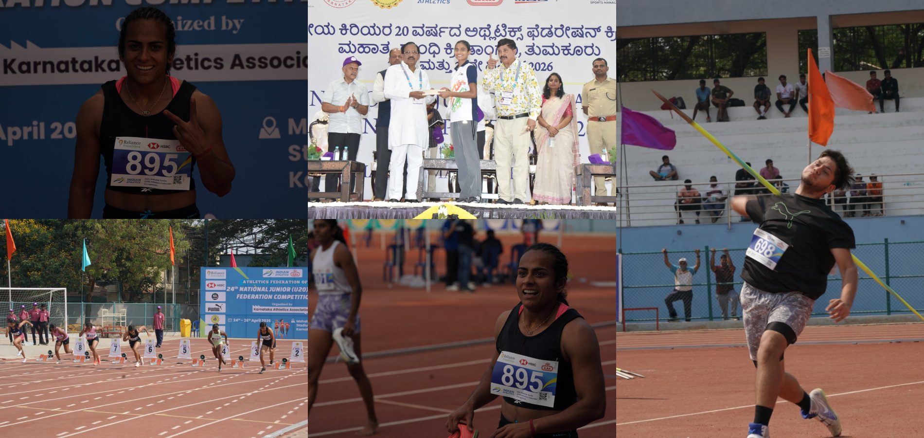 ಕಲ್ಪತರು ನಾಡು ತುಮಕೂರಿನಲ್ಲಿ ಕ್ರೀಡಾ ಹಬ್ಬ ಆರಂಭವಾಗಿದೆ. ಮಹಾತ್ಮ ಗಾಂಧಿ ಕ್ರೀಡಾಂಗಣದಲ್ಲಿ ಶುಕ್ರವಾರ ಚಾಲನೆಗೊಂಡ 24ನೇ ರಾಷ್ಟ್ರೀಯ ಕಿರಿಯರ (U-20) ಅಥ್ಲೆಟಿಕ್ಸ್ ಕ್ರೀಡಾಕೂಟದ ಮೊದಲ ದಿನವೇ ದಾಖಲೆ ಮತ್ತು ಪದಕಗಳ ಬೇಟೆ ನಡೆದಿದೆ. ಪುರುಷರ ಮತ್ತು ಮಹಿಳೆಯರ 100 ಮೀಟರ್ ಓಟದಲ್ಲಿ ಕ್ರಮವಾಗಿ ಅಭಯ್ ಸಿಂಗ್ ಮತ್ತು ನಿಪಮ್ ದೇಶದ ಅತ್ಯಂತ ವೇಗದ ಕಿರಿಯ ಓಟಗಾರರಾಗಿ ಹೊರಹೊಮ್ಮಿದ್ದಾರೆ.