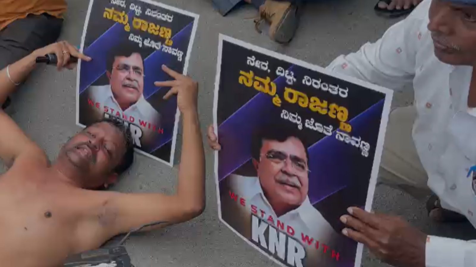 ಕೆಎನ್ ರಾಜಣ್ಣ ಅವರನ್ನು ಸಂಪುಟದಿಂದ ವಜಾಗೊಳಿಸಿರುವ ಕಾಂಗ್ರೆಸ್ ಸರ್ಕಾರದ ನಿರ್ಧಾರವು ತುಮಕೂರಿನಲ್ಲಿ ಬೃಹತ್ ಪ್ರತಿಭಟನೆಗೆ ಕಾರಣವಾಗಿದೆ. ರಾಜಣ್ಣರ ಬೆಂಬಲಿಗರು, ಕಾರ್ಯಕರ್ತರು ಮತ್ತು ಅಭಿಮಾನಿಗಳು ತುಮಕೂರಿನ ಟೌನ್‌ಹಾಲ್‌ನಿಂದ ಜಿಲ್ಲಾಧಿಕಾರಿ ಕಚೇರಿವರೆಗೆ ಜಾಥಾ ನಡೆಸಿ, ಸಿಎಂ ಸಿದ್ದರಾಮಯ್ಯ ವಿರುದ್ಧ ಆಕ್ರೋಶ ವ್ಯಕ್ತಪಡಿಸಿದ್ದಾರೆ. “We Stand With KNR” ಎಂಬ ಪೋಸ್ಟರ್‌ಗಳು ಮತ್ತು ರಾಜಣ್ಣರ ಫೋಟೋ ಇರುವ ಫ್ಲೆಕ್ಸ್‌ಗಳೊಂದಿಗೆ ಸಾವಿರಾರು ಜನರು ಘೋಷಣೆ ಕೂಗಿದ್ದಾರೆ.