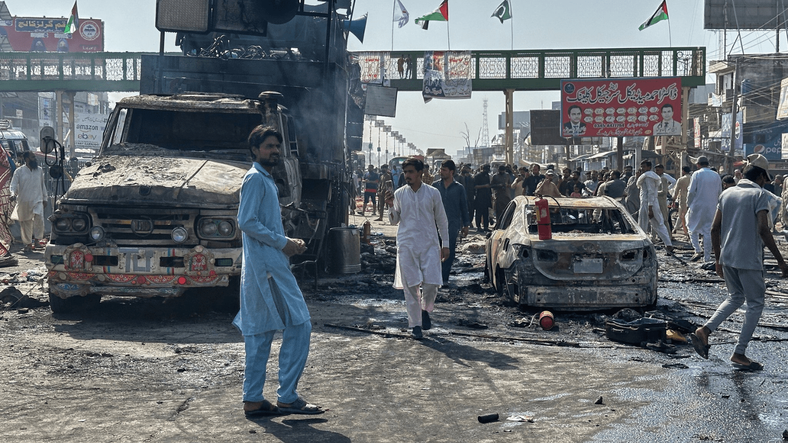 ಪಾಕಿಸ್ತಾನದಲ್ಲಿ ಹಿಂಸಾಚಾರದ ಘಟನೆಗಳು ಮುಂದುವರೆದಿದ್ದು, ಸೋಮವಾರ ನಡೆದ ಒಂದು ಘರ್ಷಣೆಯಲ್ಲಿ ಒಬ್ಬ ಪೊಲೀಸ್ ಅಧಿಕಾರಿ ಸೇರಿದಂತೆ ಐವರು ಸಾವನ್ನಪ್ಪಿದ್ದಾರೆ. ಪಂಜಾಬ್ ಪ್ರಾಂತದಲ್ಲಿ ಪ್ಯಾಲೆಸ್ಟೀನ್‌ಗೆ ಬೆಂಬಲವಾಗಿ ಸಾವಿರಾರು ಜನರು ಭಾಗವಹಿಸಿದ್ದ ಮೆರವಣಿಗೆಯೊಂದರಲ್ಲಿ ಈ ಘಟನೆ ಸಂಭವಿಸಿದೆ. ಪೊಲೀಸ್ ಅಧಿಕಾರಿಗಳು ಮತ್ತು ಪ್ರತಿಭಟನಾಕಾರರ ನಡುವಿನ ಘರ್ಷಣೆಯಿಂದಾಗಿ ಈ ದುರಂತ ಸಂಭವಿಸಿದೆ ಎಂದು ಪೊಲೀಸ್ ವರದಿಗಳು ತಿಳಿಸಿವೆ.