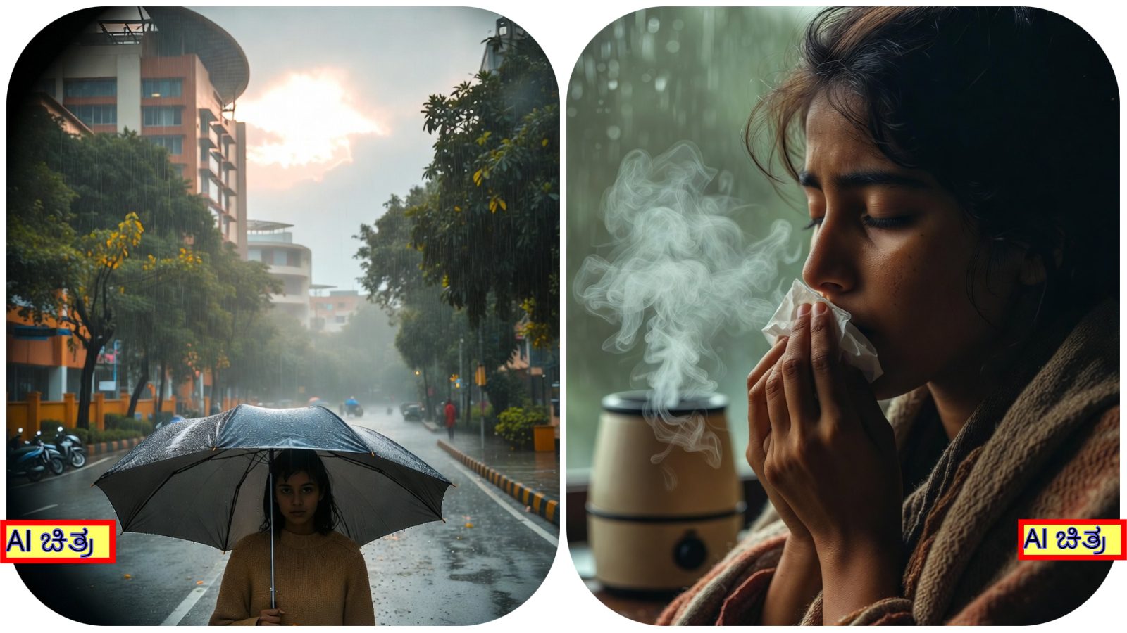 - ಉಸಿರಾಟದ ತೊಂದರೆಗಳು:ಆರ್ದ್ರತೆಯ ಹೆಚ್ಚಳದಿಂದಾಗಿ ಬ್ಯಾಕ್ಟೀರಿಯಾ ಮತ್ತು ಶಿಲೀಂಧ್ರಗಳ ಬೆಳವಣಿಗೆ ಹೆಚ್ಚುತ್ತಿದೆ. ಇದರಿಂದಾಗಿ ಅಸ್ತಮಾ ಮತ್ತು ಬ್ರಾಂಕೈಟಿಸ್ನಂಥಾ ಉಸಿರಾಟದ ತೊಂದರೆಗಳು ತೀವ್ರವಾಗ್ತಿವೆ.