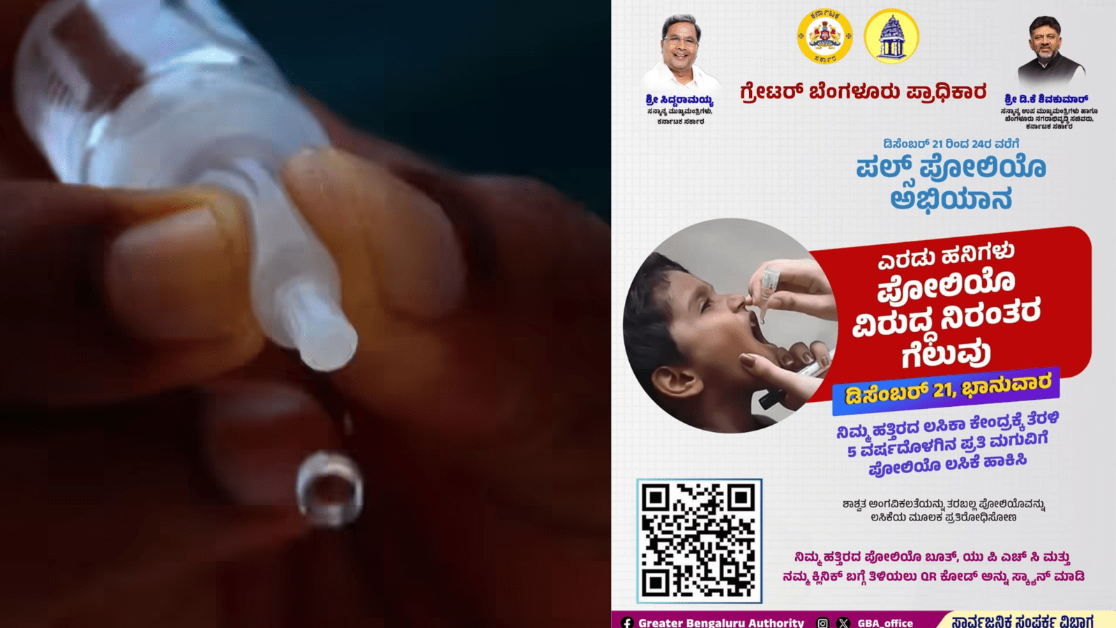 ಬೆಂಗಳೂರಿನಲ್ಲಿ ಜನಸಂಖ್ಯೆ ಹೆಚ್ಚಿರುವ ಹಿನ್ನೆಲೆಯಲ್ಲಿ, ಗ್ರೇಟರ್ ಬೆಂಗಳೂರು ಪ್ರಾಧಿಕಾರಕ್ಕೆ (GBA) ವಿಶೇಷ ಜವಾಬ್ದಾರಿ ನೀಡಲಾಗಿದೆ. ಬೆಂಗಳೂರು ವ್ಯಾಪ್ತಿಯಲ್ಲಿ ಐದು ನಿಗಮಗಳ ಮೂಲಕ ಒಟ್ಟು 11,34,988 ಮಕ್ಕಳಿಗೆ ಲಸಿಕೆ ಹಾಕುವ ಗುರಿಯನ್ನು ಹೊಂದಲಾಗಿದೆ. ಪೋಷಕರು ತಮ್ಮ ಹತ್ತಿರದ ಲಸಿಕಾ ಕೇಂದ್ರಗಳ ಮಾಹಿತಿ ಪಡೆಯಲು ಸರ್ಕಾರಿ ಜಾಲತಾಣ ಅಥವಾ ಕ್ಯೂಆರ್ ಕೋಡ್ ಸ್ಕ್ಯಾನ್ ಮಾಡಬಹುದಾಗಿದೆ ಅಥವಾ https://gba.karnataka.gov.in/polio ಭೇಟಿ ನೀಡಬಹುದು.