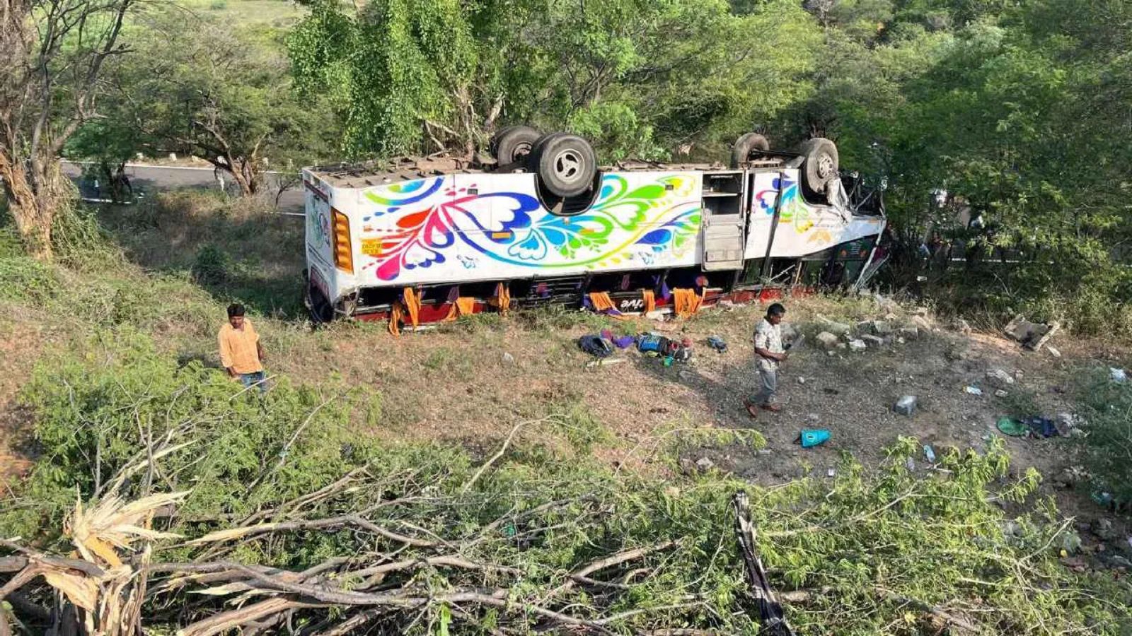 ಪ್ರವಾಸಿಗರನ್ನು ಕರೆದುಕೊಂಡು ಸಾಗುತ್ತಿದ್ದ ಒಂದು ಖಾಸಗಿ ಬಸ್, ತಿರುವಿನಲ್ಲಿ ಬ್ರೇಕ್ ಫೇಲ್ ಆಗಿ ನಿಯಂತ್ರಣ ತಪ್ಪಿ ರಸ್ತೆ ಪಕ್ಕದ ಹಳ್ಳಕ್ಕೆ ಉರುಳಿಬಿದ್ದಿದೆ. ಬಸ್ ಪೂರ್ತಿಯಾಗಿ ಹಳ್ಳದಲ್ಲಿ ನುಗ್ಗಿದ್ದು, ಅದರಲ್ಲಿ ಪ್ರಯಾಣಿಸುತ್ತಿದ್ದವರ ಮೇಲೆ ಭಾರೀ ಆಘಾತ ಬೀರಿದೆ. ಪರಿಣಾಮ 25ಕ್ಕೂ ಹೆಚ್ಚು ಜನರಿಗೆ ಗಂಭೀರ ಗಾಯಗಳಾಗಿವೆ.