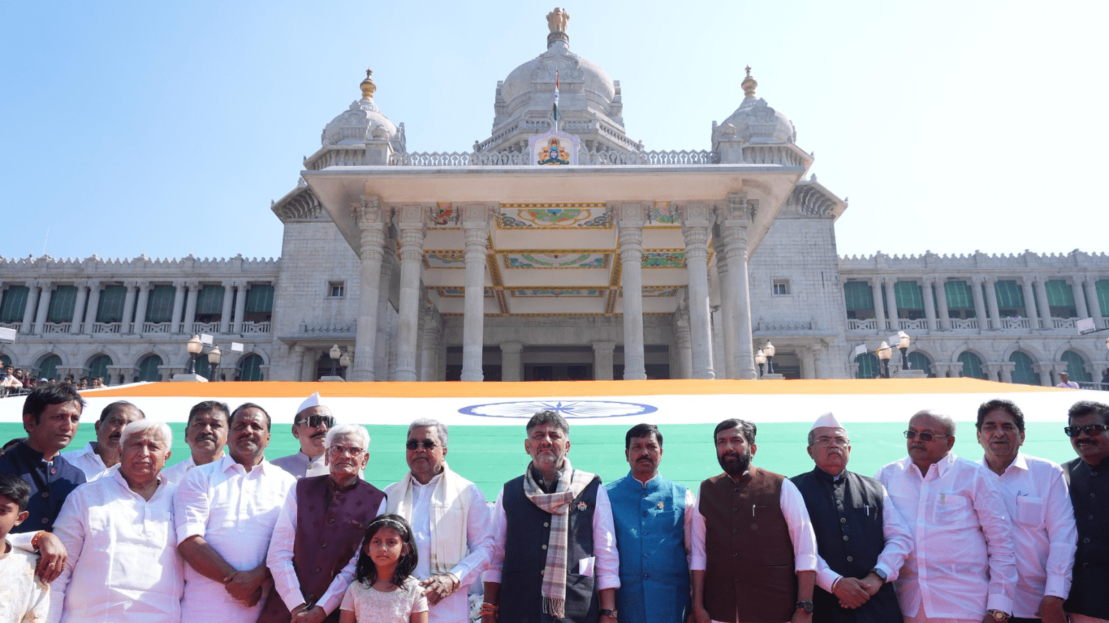 ಬೆಳಗಾವಿಯ ಸುವರ್ಣ ವಿಧಾನಸೌಧದಲ್ಲಿ ಜಗತ್ತಿನ ಎರಡನೇ ಅತಿ ದೊಡ್ಡ ಖಾದಿ ತ್ರಿವರ್ಣ ಧ್ವಜದ ಅನಾವರಣ ಕಾರ್ಯಕ್ರಮದಲ್ಲಿ ಮಾನ್ಯ ಮುಖ್ಯಮಂತ್ರಿಗಳಾದ @siddaramaiah ಹಾಗೂ ಉಪಮುಖ್ಯಮಂತ್ರಿ @DKShivakumar ಅವರು ಭಾಗವಹಿಸಿದರು. ಕಾರ್ಯಕ್ರಮದಲ್ಲಿ ವಿಧಾನಸಭಾಧ್ಯಕ್ಷರಾದ ಶ್ರೀ ಯು.ಟಿ. ಖಾದರ್ ಹಾಗೂ ಸಚಿವರುಗಳು ಉಪಸ್ಥಿತರಿದ್ದರು. pic.twitter.com/oy6wlcRFRd