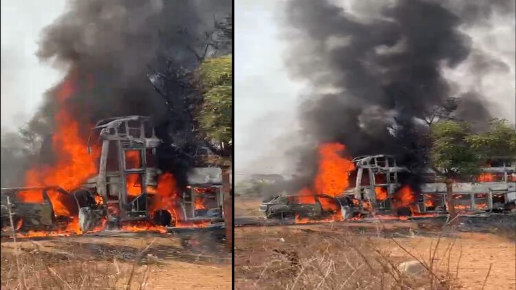 ಬಸ್ನಲ್ಲಿ ಪ್ರಯಾಣಿಸುತ್ತಿದ್ದ ಇತರ ಪ್ರಯಾಣಿಕರು ಡಿಕ್ಕಿಯ ಆಘಾತಕ್ಕೊಳಗಾಗಿ ತಕ್ಷಣವೇ ಬಸ್ನಿಂದ ಹಾರಿ ತಮ್ಮ ಜೀವ ಉಳಿಸಿಕೊಂಡಿದ್ದಾರೆ. ಆದರೆ ಕಾರಿನಲ್ಲಿದ್ದವರು ಬೆಂಕಿಯ ಕೆನ್ನಾಲಿಗೆಗೆ ಸಿಕ್ಕಿ ತಪ್ಪಿಸಿಕೊಳ್ಳಲು ಸಾಧ್ಯವಾಗದೆ ಸ್ಥಳದಲ್ಲೇ ಮೃತಪಟ್ಟಿದ್ದಾರೆ. ಘಟನಾ ಸ್ಥಳದಲ್ಲಿ ದಟ್ಟ ಹೊಗೆ ಮತ್ತು ಬೆಂಕಿಯ ಉರಿ ಎದ್ದುಆವರಿಸಿದ್ದು, ಸ್ಥಳೀಯರು ಮತ್ತು ಬಸ್ ಪ್ರಯಾಣಿಕರು ಬೆಂಕಿ ನಂದಿಸಲು ಪ್ರಯತ್ನಿಸಿದರೂ, ಬೆಂಕಿಯು ಹೆಚ್ಚಿದ್ದ ಕಾರಣದಿಂದ ಅದು ಸಾಧ್ಯವಾಗಲಿಲ್ಲ.