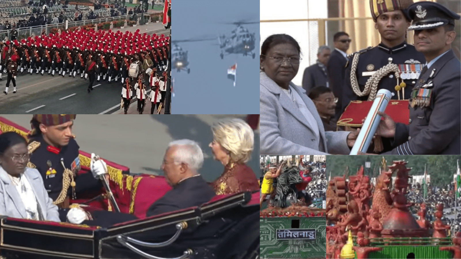 ವಾಯುಪಡೆಯ ಶಕ್ತಿ ಪ್ರದರ್ಶನವು ಪ್ರೇಕ್ಷಕರ ಮೈ ರೋಮಾಂಚನಗೊಳಿಸಿತು. ‘ಆಪರೇಷನ್ ಸಿಂಧೂರ್’ ಸಮಯದಲ್ಲಿ ಶತ್ರುಗಳ ಹೆಡೆಮುರಿ ಕಟ್ಟಿದ ಎರಡು ರಫೇಲ್ ಜೆಟ್ಗಳು, ಎರಡು ಸುಖೋಯ್-30, ಎರಡು ಮಿಗ್-29 ಮತ್ತು ಒಂದು ಜಾಗ್ವಾರ್ ಯುದ್ಧ ವಿಮಾನಗಳು ಆಕಾಶದಲ್ಲಿ ಅದ್ಭುತ ಲೋಹದ ಹಕ್ಕಿಗಳಂತೆ ಹಾರಾಡಿ ವಾಯುಪಡೆಯ ಸಾಮರ್ಥ್ಯವನ್ನು ತೋರಿಸಿದವು. ಸುಮಾರು 2,500 ಕಲಾವಿದರು ಸಾಂಸ್ಕೃತಿಕ ನೃತ್ಯಗಳ ಮೂಲಕ ಭಾರತದ ವೈವಿಧ್ಯತೆಯನ್ನು ಅನಾವರಣಗೊಳಿಸಿದರು.