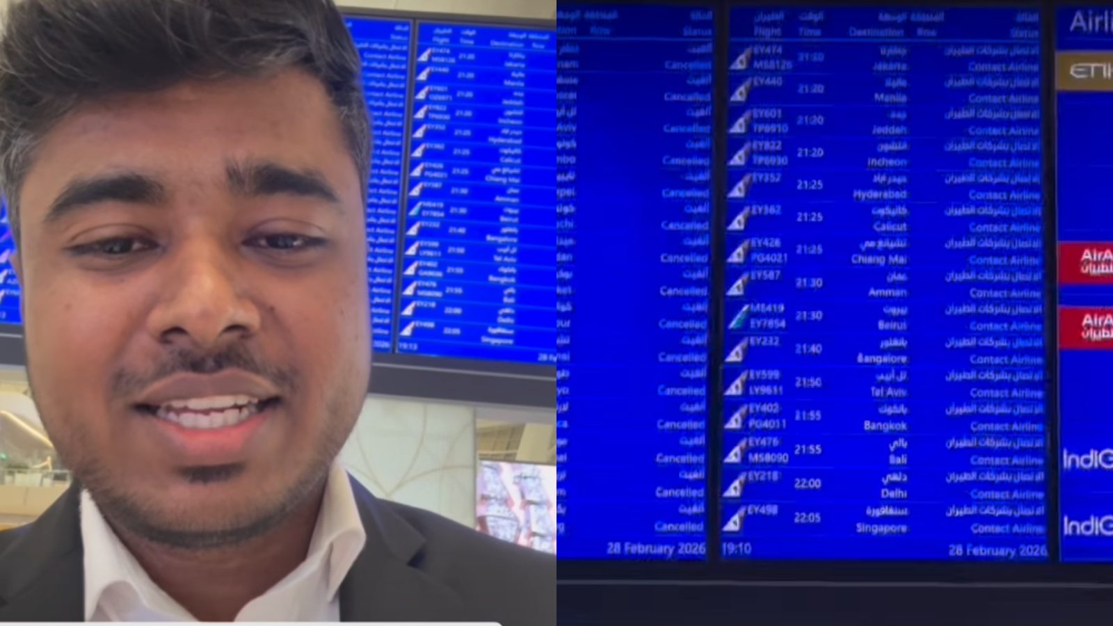 ಅವರು ವಿಡಿಯೋದಲ್ಲಿ ವಿಮಾನ ನಿಲ್ದಾಣದ ಡಿಪಾರ್ಚರ್ ಬೋರ್ಡ್‌ನಲ್ಲಿ ದೊಡ್ಡ ಪಟ್ಟಿಯಲ್ಲಿ ಕ್ಯಾನ್ಸಲ್ ಆಗಿರುವ ವಿಮಾನಗಳನ್ನು ತೋರಿಸಿದ್ದಾರೆ. “ಇಲ್ಲಿ ಸಾವಿರಾರು ಜನರು ಸಿಲುಕಿಕೊಂಡಿದ್ದಾರೆ. ನಾವು ಏನು ಮಾಡೋಣ ಅಂತ ಗೊತ್ತಿಲ್ಲ” ಎಂದು ಆತಂಕ ವ್ಯಕ್ತಪಡಿಸಿದ್ದಾರೆ.
