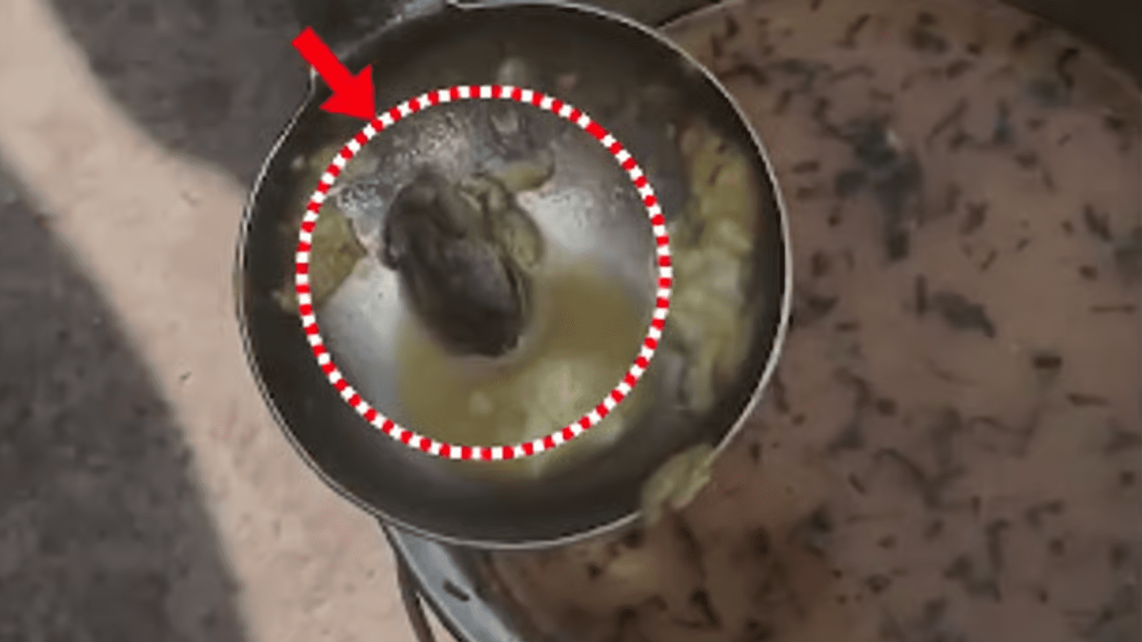 ಸಾಂಬಾರ್ ಪಾತ್ರೆಯೊಳಗೆ ಕಪ್ಪೆ ತೇಲುತ್ತಿರುವ ಈ ಆಘಾತಕಾರಿ ವೀಡಿಯೊ, ಶಾಲೆಯ ಅಡುಗೆಮನೆಯಲ್ಲಿ ಊಟ ತಯಾರಿಕೆಯ ಸಮಯದಲ್ಲಿ ತೆಗೆಯಲಾಗಿದೆ ಎಂದು ಹೇಳಲಾಗುತ್ತಿದೆ. ಅದರಲ್ಲಿ, ಸಾಂಬಾರ್ ಪಾತ್ರೆಯ ಮಧ್ಯದಲ್ಲಿಯೇ ಒಂದು ದೊಡ್ಡ ಗಾತ್ರದ ಕಪ್ಪೆಯೊಂದು ಸ್ಪಷ್ಟವಾಗಿ ಕಾಣುತ್ತಿದೆ. ಈ ಘಟನೆಯ ಹಿಂದೆ ಅಡುಗೆಯವರ ಅಜಾಗರೂಕತೆ ಮತ್ತು ಆಹಾರ ಪದಾರ್ಥಗಳ ಗುಣ ನಿಯಂತ್ರಣದ ಕೊರತೆ ಇರಬಹುದೆಂದು ಹೇಳಲಾಗುತ್ತಿದೆ.