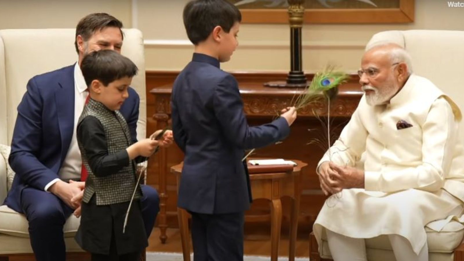 ಅಮೆರಿಕದ ಉಪಾಧ್ಯಕ್ಷ ಮಕ್ಕಳಿಗೆ ನವಿಲುಗರಿ ಗಿಫ್ಟ್‌ ನೀಡಿದ ಪ್ರಧಾನಿ ಮೋದಿ!