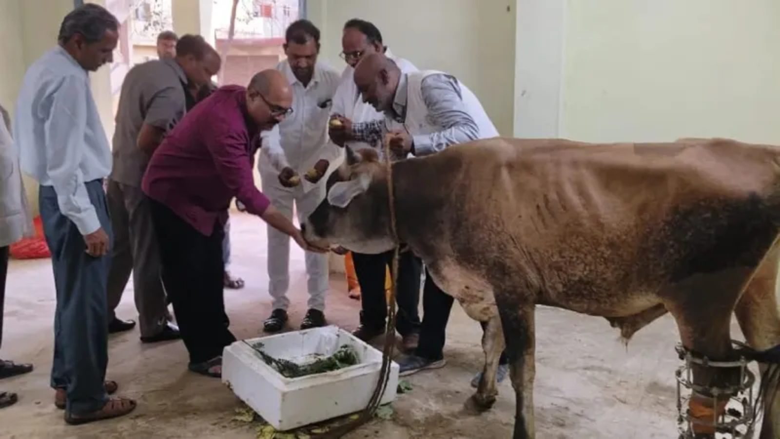 123 (90)ಪೊಲೀಸ್ ಕಾನ್ಸ್ಟೆಬಲ್‌ಗಳು ಹಸುವನ್ನು ಆಸ್ಪತ್ರೆಗೆ ಕರೆದೊಯ್ದು, ಪಶುವೈದ್ಯರಿಗೆ ಮಾಹಿತಿ ನೀಡಿದರು. ನ್ಯಾಯಮೂರ್ತಿಗಳು ಆಸ್ಪತ್ರೆಗೆ ಭೇಟಿ ನೀಡಿ, ಹಸುವಿನ ಆರೋಗ್ಯ ಸ್ಥಿತಿಯ ಬಗ್ಗೆ ವಿಚಾರಿಸಿದರು. ಪಶುಸಂಗೋಪನಾ ಇಲಾಖೆಯ ಜಿಲ್ಲಾ ಅಧಿಕಾರಿ ನರಸಿಂಹ ರಾವ್ ಮಾರ್ಗದರ್ಶನದಲ್ಲಿ ಶಸ্ত್ರಚಿಕಿತ್ಸಕ ನಾಗೇಶ್ವರ ರಾವ್ ಹಸುವಿನ ಕಾಲಿಗೆ ಶಸ್ತ್ರಚಿಕಿತ್ಸೆ ನಡೆಸಿ, ಕೃತಕ ಕಾಲು ಅಳವಡಿಸಿದರು.