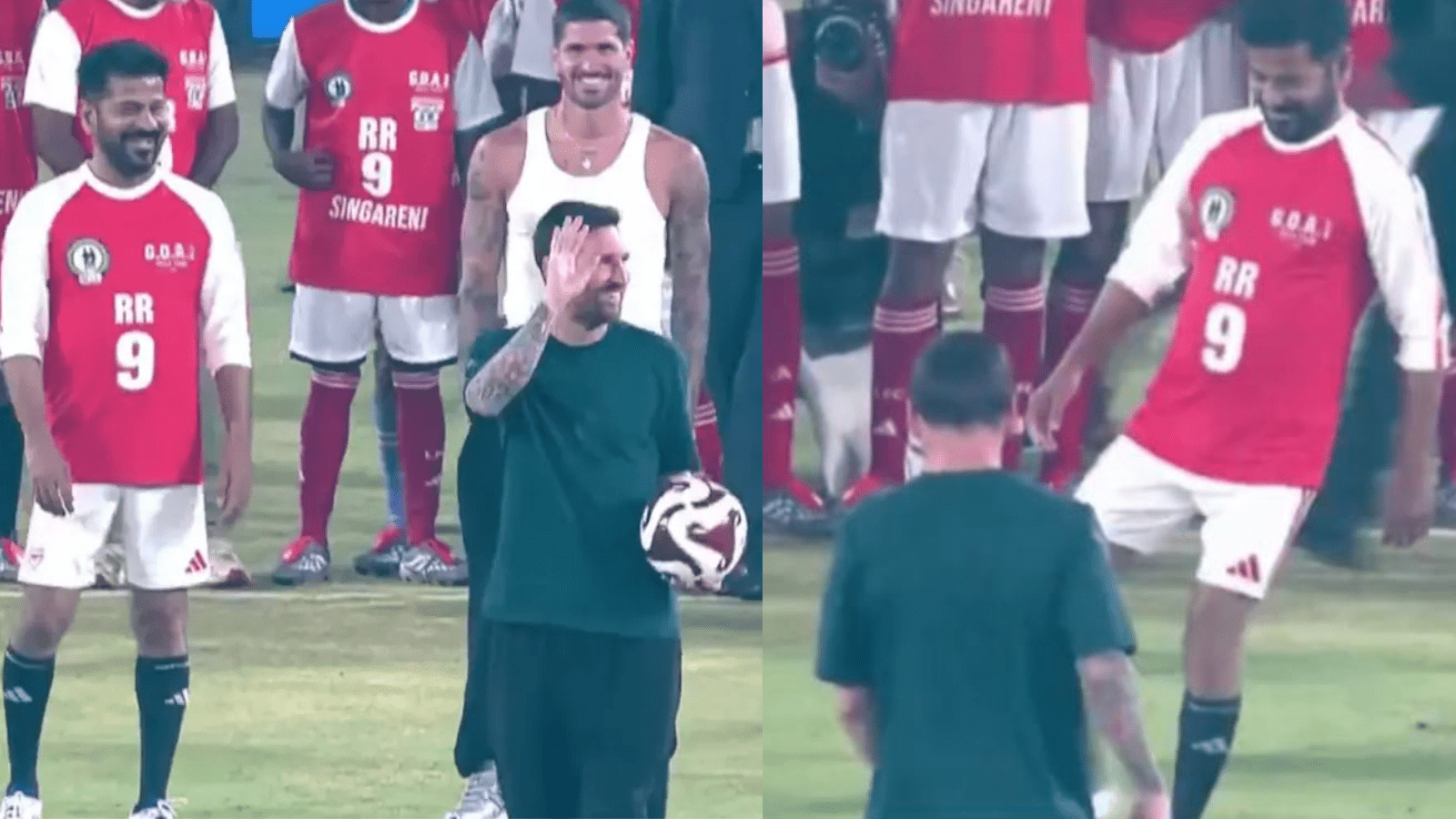 ಪ್ರದರ್ಶನ ಪಂದ್ಯ ಮುಕ್ತಾಯವಾದ ನಂತರ, ಲಿಯೋನೆಲ್ ಮೆಸ್ಸಿ ತೆಲಂಗಾಣ ಮುಖ್ಯಮಂತ್ರಿ ರೇವಂತ್ ರೆಡ್ಡಿ ಅವರೊಂದಿಗೆ ಮೈದಾನಕ್ಕೆ ಎಂಟ್ರಿಯಾದರು. ಇಬ್ಬರೂ ಒಂದೇ ಮೈದಾನದಲ್ಲಿ ಕಾಣಿಸಿಕೊಂಡಿದ್ದು, ಅಭಿಮಾನಿಗಳಲ್ಲಿ ಉತ್ಸಾಹ ಮೂಡಿಸಿತ್ತು. ನಂತರ ಮೆಸ್ಸಿಯ ಕೈಯಿಂದ ಚೆಂಡು ಪಡೆದುಕೊಂಡ ರೇವಂತ್ ರೆಡ್ಡಿ ಗೋಲ್ಗೆ ಶಾಟ್ ಹೊಡೆದು ಯಶಸ್ವಿಯಾಗಿ ಗೋಲ್ ಬಾರಿಸಿದರು.