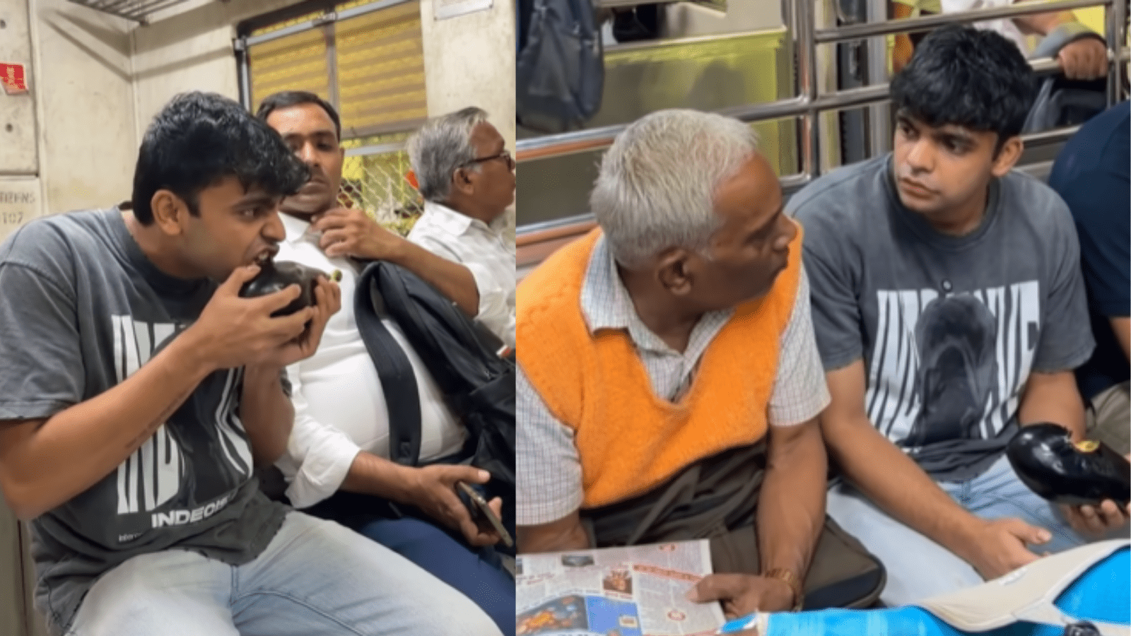ಖ್ಯಾತ ಸೋಶಿಯಲ್ ಮೀಡಿಯಾ ವ್ಲಾಗರ್ ಪ್ರಣಯ್ ಜೋಶಿ ಎಂಬುವವರು ಈ ರೀತಿಯ ವಿಡಿಯೋ ಮಾಡಿದ್ದಾರೆ. ಮುಂಬೈ ಲೋಕಲ್ ರೈಲುಗಳಲ್ಲಿ ಇಂತಹ ವಿಭಿನ್ನ ಮತ್ತು ವಿಚಿತ್ರ ಪ್ರಯೋಗಗಳನ್ನು ಮಾಡುವ ಮೂಲಕವೇ ಇವರು ಅಪಾರ ಫಾಲೋವರ್ಸ್ ಗಳಿಸಿದ್ದಾರೆ. ಈ ಬಾರಿ ‘ವಿಭಿನ್ನ ಕಾಂಬಿನೇಶನ್ ಆಹಾರ’. ಇದು ಕೇವಲ ಮನೋರಂಜನೆಯ ಉದ್ದೇಶಕ್ಕಾಗಿ ಮಾಡಿದ ವಿಡಿಯೋ ಆಗಿದ್ದರೂ, ರೈಲಿನಲ್ಲಿದ್ದ ಸಹ ಪ್ರಯಾಣಿಕರ ಮುಖದ ಹಾವಭಾವಗಳು (Expressions) ವಿಡಿಯೋವನ್ನು ಮತ್ತಷ್ಟು ಫನ್ನಿಯಾಗಿಸಿವೆ.