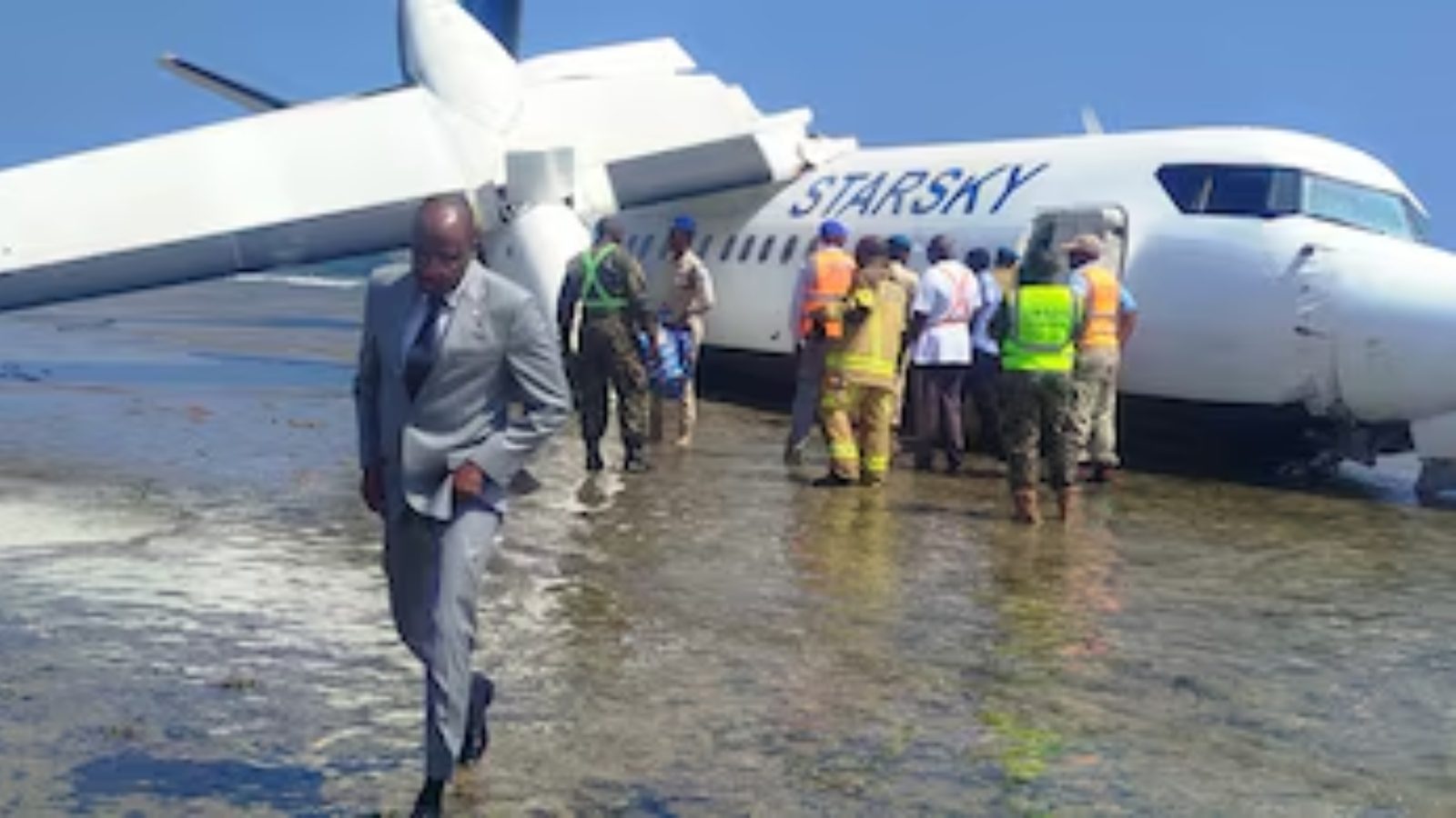 ಘಟನೆಯ ವಿವರ ಸ್ಟಾರ್ಸ್ಕಿ ಏವಿಯೇಷನ್ ಕಂಪನಿಯ ವಿಮಾನವು ಉತ್ತರ ಸೊಮಾಲಿಯಾದ ಗಾಲ್ಕಸಿಯೊ ನಗರಕ್ಕೆ ತೆರಳುತ್ತಿತ್ತು. ಟೇಕ್ ಆಫ್ ಆದ ಸುಮಾರು 15 ನಿಮಿಷಗಳ ನಂತರ ವಿಮಾನದಲ್ಲಿ ತಾಂತ್ರಿಕ ಸಮಸ್ಯೆ ಕಂಡುಬಂದಿತು. ಸಿಬ್ಬಂದಿಯು ತಕ್ಷಣ ತುರ್ತು ಲ್ಯಾಂಡಿಂಗ್ಗೆ ನಿರ್ಧರಿಸಿ ಹಿಂತಿರುಗಿತು. ಆದರೆ ಲ್ಯಾಂಡಿಂಗ್ ಪ್ರಯತ್ನದ ಸಮಯದಲ್ಲಿ ವಿಮಾನವು ರನ್ವೇಯಿಂದ ಹೊರಗೆ ಜಾರಿ ಬೀಚ್ನ ಕಡೆಗೆ ಹೋಗಿ ನಿಂತಿತು.
