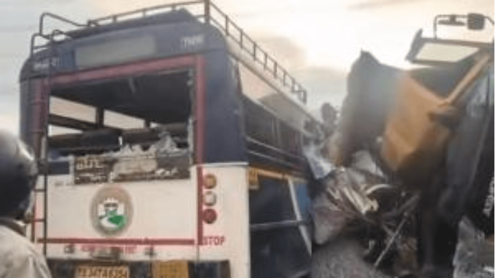 ಭೀಕರ ರಸ್ತೆ ಅಪಘಾತ: ಬಸ್‌‌ ಮೇಲೆ ಟಿಪ್ಪರ್ ಮಗುಚಿ ಬಿದ್ದು 17 ಮಂದಿ ದುರ್ಮರಣ
