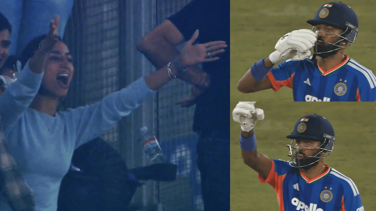 ಇನಿಂಗ್ಸ್‌ನ ಕೊನೆಯ ಎರಡು ಎಸೆತಗಳಲ್ಲಿ ಸಿಕ್ಸರ್‌ ಬಾರಿಸುವ ಮೂಲಕ ಪಾಂಡ್ಯ ಅರ್ಧಶತಕ ಪೂರೈಸಿದರು. ಅವರ ಬ್ಯಾಟ್‌ನಿಂದ ಸಿಕ್ಸರ್ ಮತ್ತು ಬೌಂಡರಿಗಳ ಮಳೆ ಸುರಿಯುತ್ತಿದ್ದಾಗ, ಪ್ರೇಕ್ಷಕರ ಗ್ಯಾಲರಿಯಲ್ಲಿ ಕುಳಿತಿದ್ದ ಮಹಿಕಾ ಶರ್ಮಾ ಚಪ್ಪಾಳೆ ತಟ್ಟುತ್ತಾ ಅವರನ್ನು ಹುರಿದುಂಬಿಸುತ್ತಿದ್ದ ದೃಶ್ಯ ಕ್ಯಾಮೆರಾಗಳಲ್ಲಿ ಸೆರೆಯಾಯಿತು. ಅರ್ಧಶತಕ ಪೂರೈಸಿದ ಕ್ಷಣದಲ್ಲೇ ಪಾಂಡ್ಯ ಗ್ಯಾಲರಿಯತ್ತ ಮುಖ ಮಾಡಿ ಫ್ಲೈಯಿಂಗ್ ಕಿಸ್ ನೀಡಿದ್ದು, ಈ ದೃಶ್ಯ ಸೋಶಿಯಲ್‌ ಮೀಡಿಯಾದಲ್ಲಿ ವೈರಲ್‌ ಆಗಿದೆ..