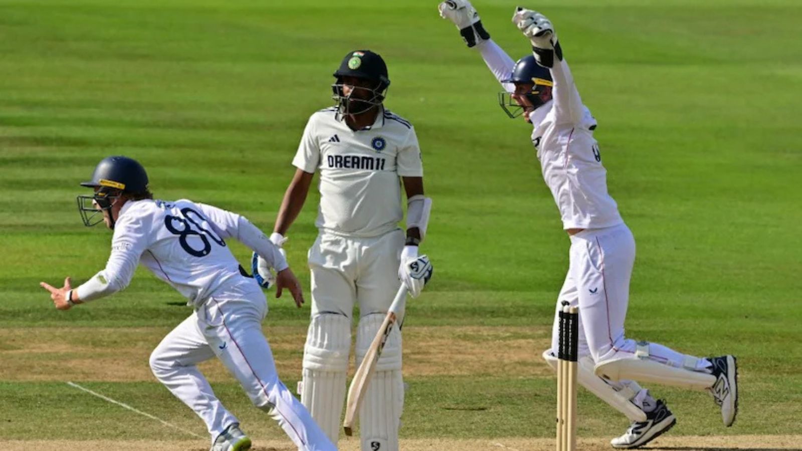 ಎಂಟನೇ ವಿಕೆಟ್ಗೆ ಜೊತೆಯಾದ ರವೀಂದ್ರ ಜಡೇಜಾ ಮತ್ತು ನಿತೀಶ್ ಕುಮಾರ್ ರೆಡ್ಡಿ 30 ರನ್ಗಳ ಜೊತೆಯಾಟವಾಡಿ ಭರವಸೆಯನ್ನು ಚಿಗುರಿಸಿದರು. ನಿತೀಶ್ 53 ಎಸೆತಗಳಲ್ಲಿ 13 ರನ್ ಗಳಿಸಿದರೂ, ಕ್ರಿಸ್ ವೋಕ್ಸ್ ಎಸೆತದಲ್ಲಿ ವಿಕೆಟ್ ಕಳೆದುಕೊಂಡರು. ಇದರೊಂದಿಗೆ ಭಾರತದ ಗೆಲುವಿನ ಆಸೆ ಕ್ಷೀಣಿಸಿತ್ತು. ಆದರೆ, ಜಡೇಜಾ ಜೊತೆಗೆ ಜಸ್ಪ್ರೀತ್ ಬುಮ್ರಾ 9ನೇ ವಿಕೆಟ್ಗೆ 35 ರನ್ಗಳ ಜೊತೆಯಾಟವಾಡಿದರು. ಬುಮ್ರಾ 54 ಎಸೆತಗಳಲ್ಲಿ 5 ರನ್ ಗಳಿಸಿ ಸ್ಟೋಕ್ಸ್ಗೆ ವಿಕೆಟ್ ಒಪ್ಪಿಸಿದರು. ಕೊನೆಯ ವಿಕೆಟ್ನಲ್ಲಿ ಮೊಹಮ್ಮದ್ ಸಿರಾಜ್ ಜೊತೆ ಜಡೇಜಾ ಕೊನೆಯವರೆಗೂ ಹೋರಾಡಿದರೂ, ಶೋಯೆಬ್ ಬಷೀರ್ ಎಸೆತದಲ್ಲಿ ಸಿರಾಜ್ ಔಟ್ ಆಗಿ ಭಾರತ ಸೋಲು ಕಂಡಿತ್ತು.
