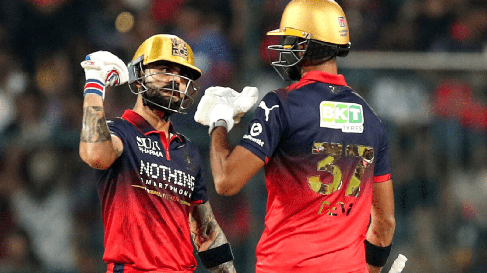 ‘ಕಿಂಗ್’ ವಿರಾಟ್ ಕೊಹ್ಲಿ ತಮ್ಮ ಎಂದಿನ ಕ್ಲಾಸ್ ಆಟದ ಮೂಲಕ ಅಭಿಮಾನಿಗಳನ್ನು ರಂಜಿಸಿದರು. ಕೇವಲ 38 ಎಸೆತಗಳನ್ನು ಎದುರಿಸಿದ ಕೊಹ್ಲಿ, 5 ಭರ್ಜರಿ ಸಿಕ್ಸರ್ ಹಾಗೂ 5 ಬೌಂಡರಿಗಳ ನೆರವಿನಿಂದ ಅಜೇಯ 61 ರನ್ ಸಿಡಿಸಿ ಜಯದ ಹಾದಿಯನ್ನು ಸುಗಮಗೊಳಿಸಿದರು. ಇವರಿಗೆ ಸಾಟಿಯಿಲ್ಲದ ಸಾಥ್ ನೀಡಿದ ಯುವ ಬ್ಯಾಟರ್ ದೇವದತ್ ಪಡಿಕ್ಕಲ್, ಕೇವಲ 26 ಎಸೆತಗಳಲ್ಲಿ 7 ಬೌಂಡರಿ ಮತ್ತು 4 ಸಿಕ್ಸರ್ ಸಹಿತ 61 ರನ್ ಚಚ್ಚಿದರು. ಪಡಿಕ್ಕಲ್ ಅವರ ಈ ಸ್ಪೋಟಕ ಇನ್ನಿಂಗ್ಸ್ ಪಂದ್ಯದ ಚಿತ್ರಣವನ್ನೇ ಬದಲಿಸಿತು.