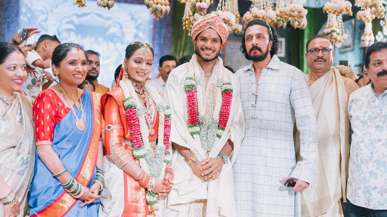 ವೈಶಾಕ್ ಆಪ್ತ ಸ್ನೇಹಿತರಾಗಿರುವ ಅಭಿನಯ ಚಕ್ರವರ್ತಿ ಕಿಚ್ಚ ಸುದೀಪ್ ಸಂಪ್ರದಾಯಿಕ ಕುರ್ಥಾ ಧರಿಸಿ ಮದುವೆಗೆ ಆಗಮಿಸಿದ್ರು. ನವ ಜೋಡಿ ವೈಶಾಕ್ ವಿಜಯ್ ಕುಮಾರ್ ಹಾಗೂ ಸಾಗರಿಕಾಗೆ ಶುಭಾ ಕೋರಿದರು. ಜೊತೆಗೆ ಕ್ರಿಕೆಟ್ ಸ್ನೇಹಿತರಾದ ದೇವದತ್ತ್ ಪಡೀಕ್ಕಲ್ ಮತ್ತು ಪ್ರಸಿದ್ಧ ಕೃಷ್ಣ ಸೇರಿದಂತೆ ಅನೇಕ ಆಪ್ತರು ಭಾಗವಹಿಸಿ ನವದಂಪತಿಗಳ ಸಂತೋಷಕ್ಕೆ ಸಾಕ್ಷಿಯಾದರು.