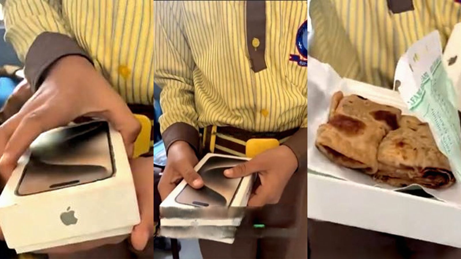 ವಿಡಿಯೋದಲ್ಲಿ ಕಾಣುವಂತೆ, ತರಗತಿಯಲ್ಲಿ ಶಿಕ್ಷಕಿ ಮಕ್ಕಳ ಬಳಿ ಹೋಗಿ “ಏನಿದು ನಿನ್ನ ಕೈಯಲ್ಲಿ?” ಎಂದು ಕೇಳುತ್ತಾರೆ. ಹುಡುಗ ತುಂಬಾ ಗಂಭೀರ ಮುಖದಿಂದ “ಮೇಡಂ, ಪರಾಠಾ” ಎಂದು ಉತ್ತರಿಸುತ್ತಾನೆ. ಶಿಕ್ಷಕಿ “ಓಪನ್ ಮಾಡಿ ತೋರಿಸಿ” ಎಂದಾಗ ಬಾಕ್ಸ್ ತೆಗೆದು ತೋರಿಸಿದ್ದು, ಐಫೋನ್ನ ದುಬಾರಿ ಬಾಕ್ಸ್. ಆದರೆ ಒಳಗೆ ಐಫೋನ್ ಅಲ್ಲ ಬಿಸಿ ಬಿಸಿ ಪರಾಠಾ.